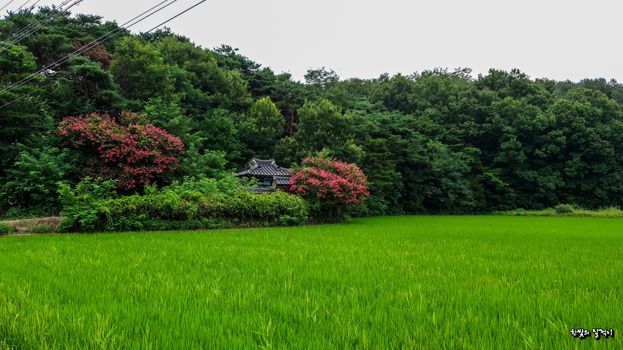 푸른 논을 배경으로 화사한 배롱나무꽃이 참 귀하게 느껴지네요.^^