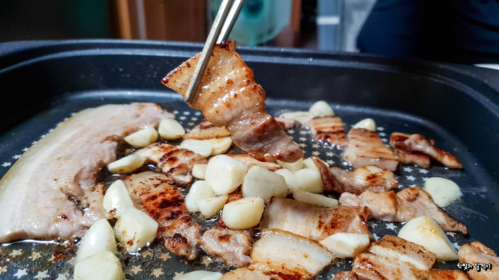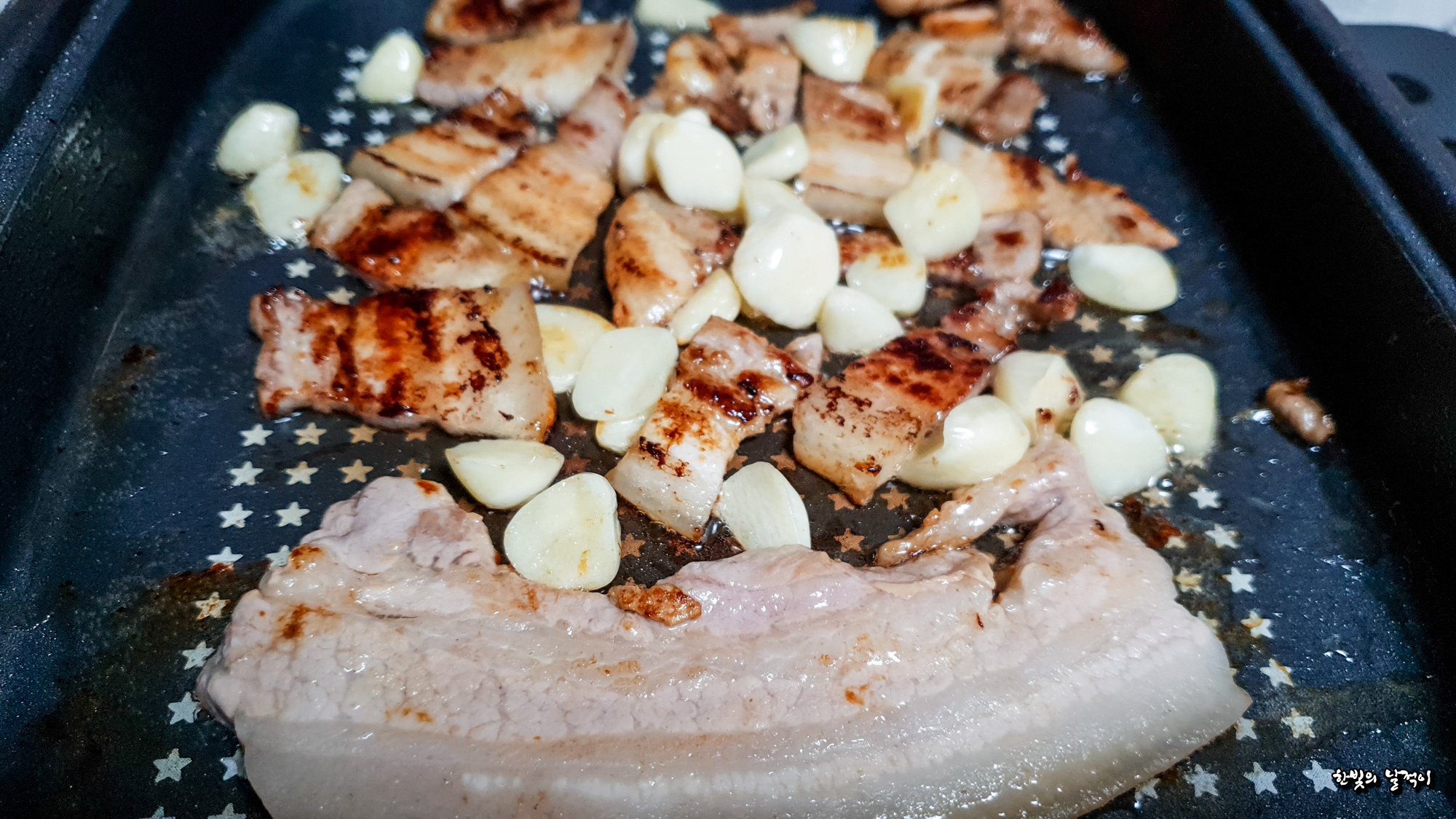 전기 그릴에다가 삼겹살을 구웠어요.