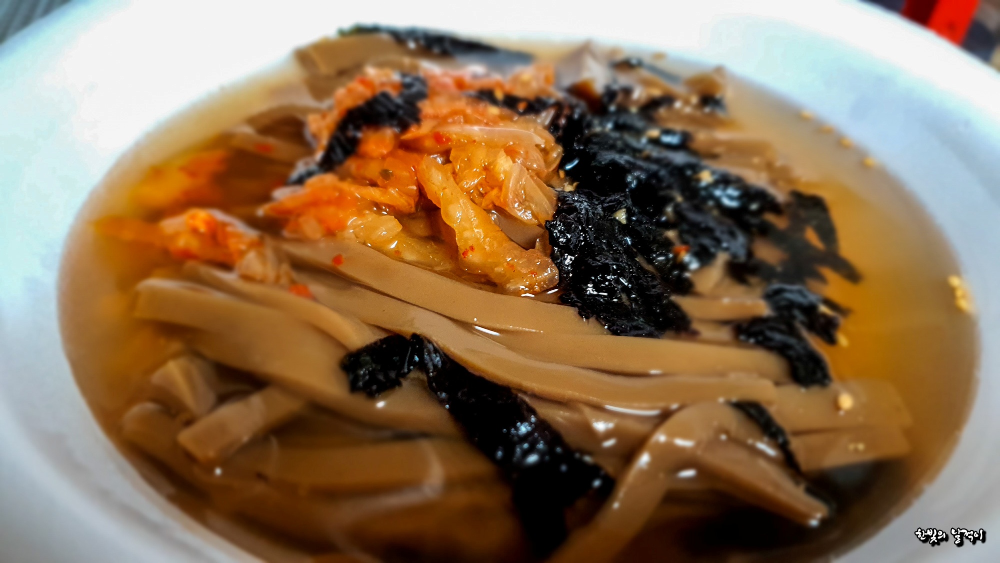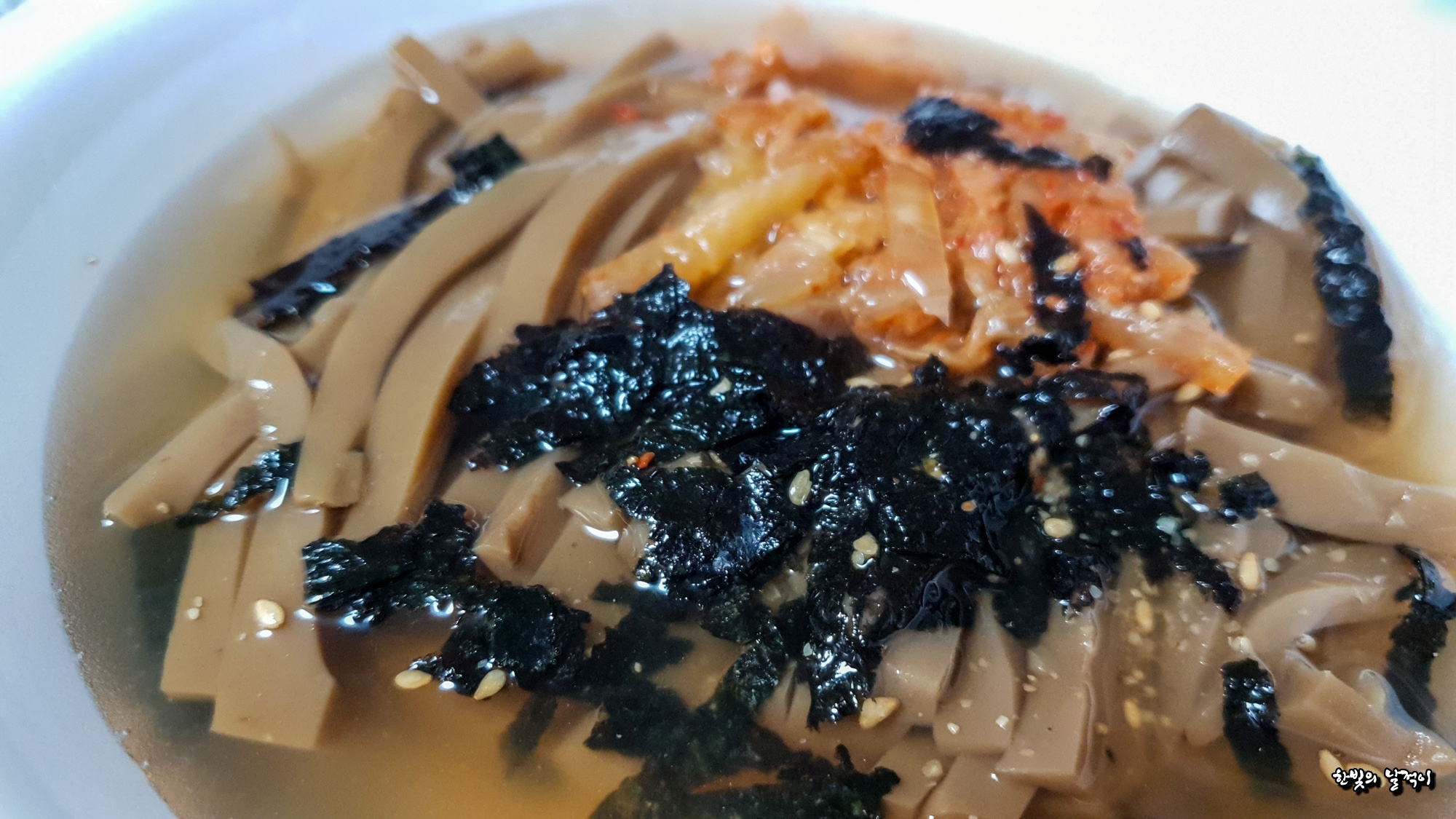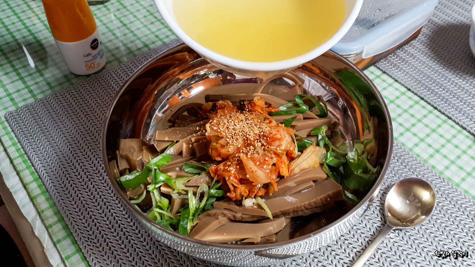 이렇게 묵밥에다가 함께 준 육수를 붓기만 하면 되니 무척 간편하네요.^^