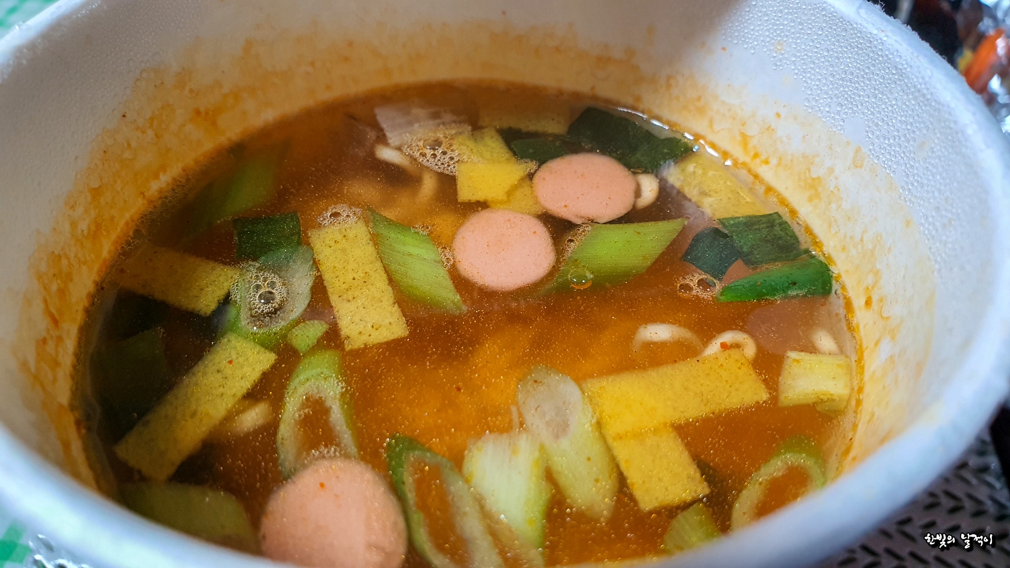 물을 붓고 기다리면서 김밥 한 입 먹어봅니다.