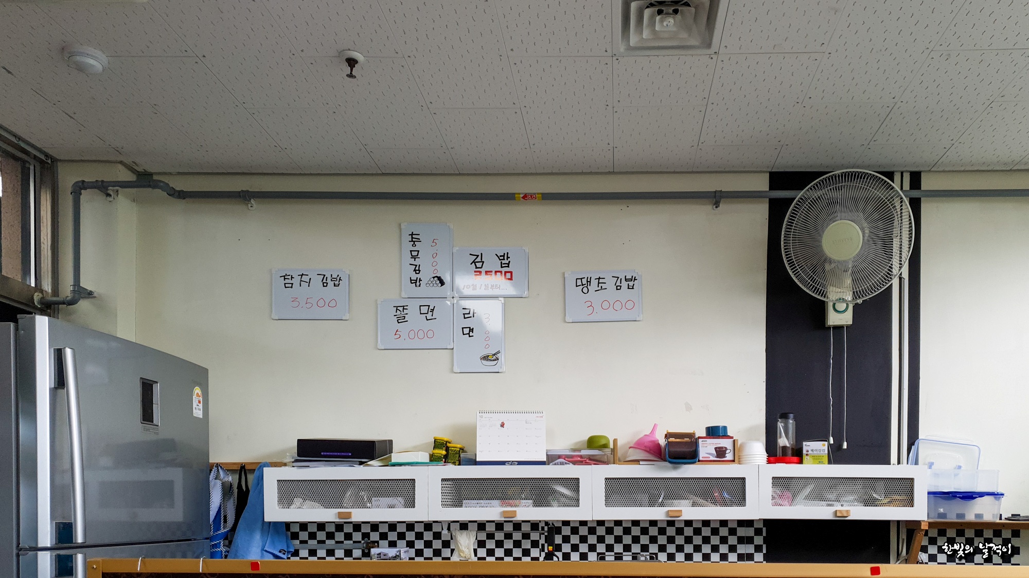 김밥과 참치김밥, 충무김밥, 또 라면과 쫄면도 하는 곳이네요.