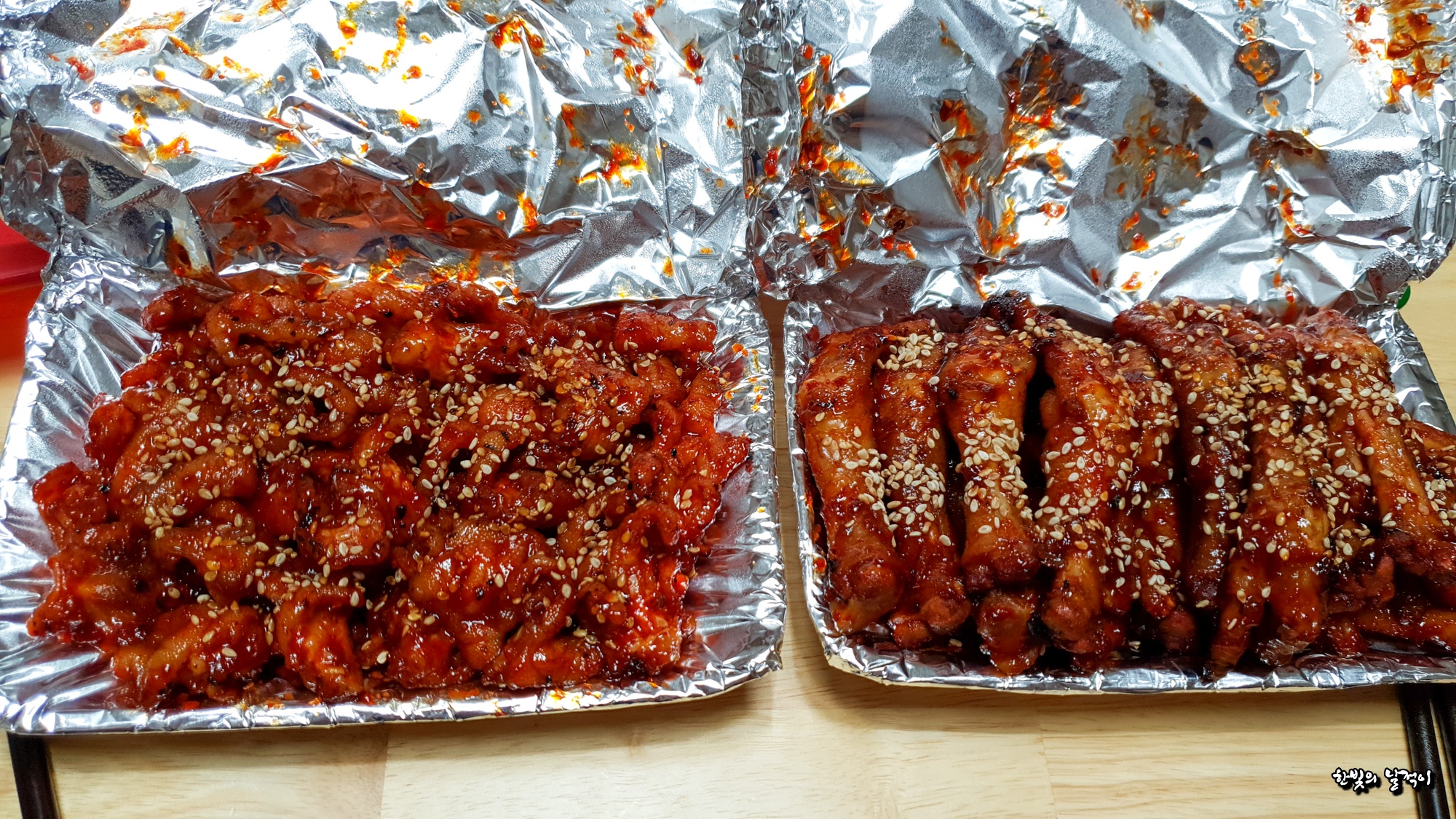 매콤이 촌닭 닭발 두 가지로 둘이서 소주 2병 반을 먹었어요. 하하하~!!!