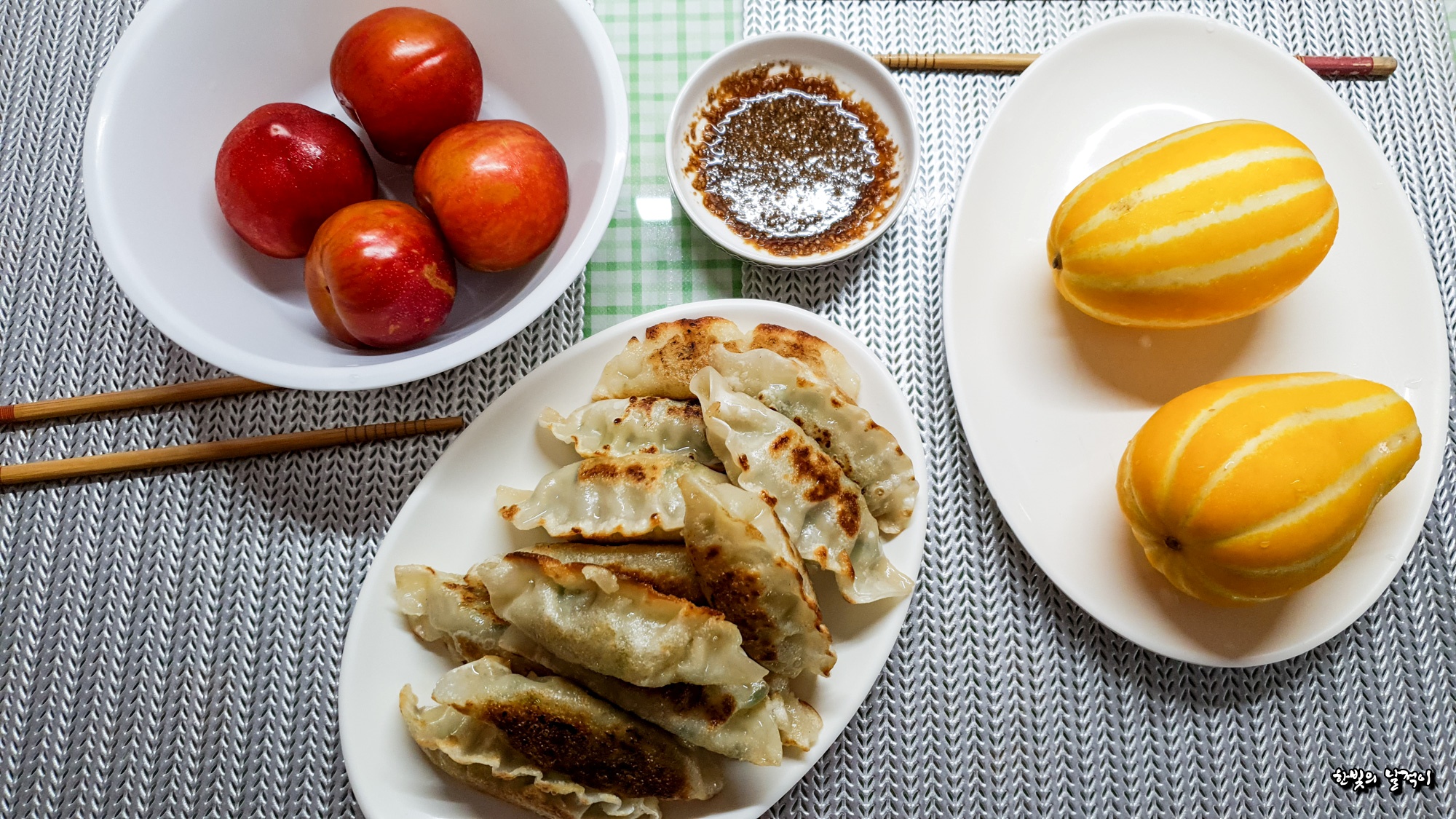 며칠 앞서 내가 먹을 군만두를 한입 먹어보더니,