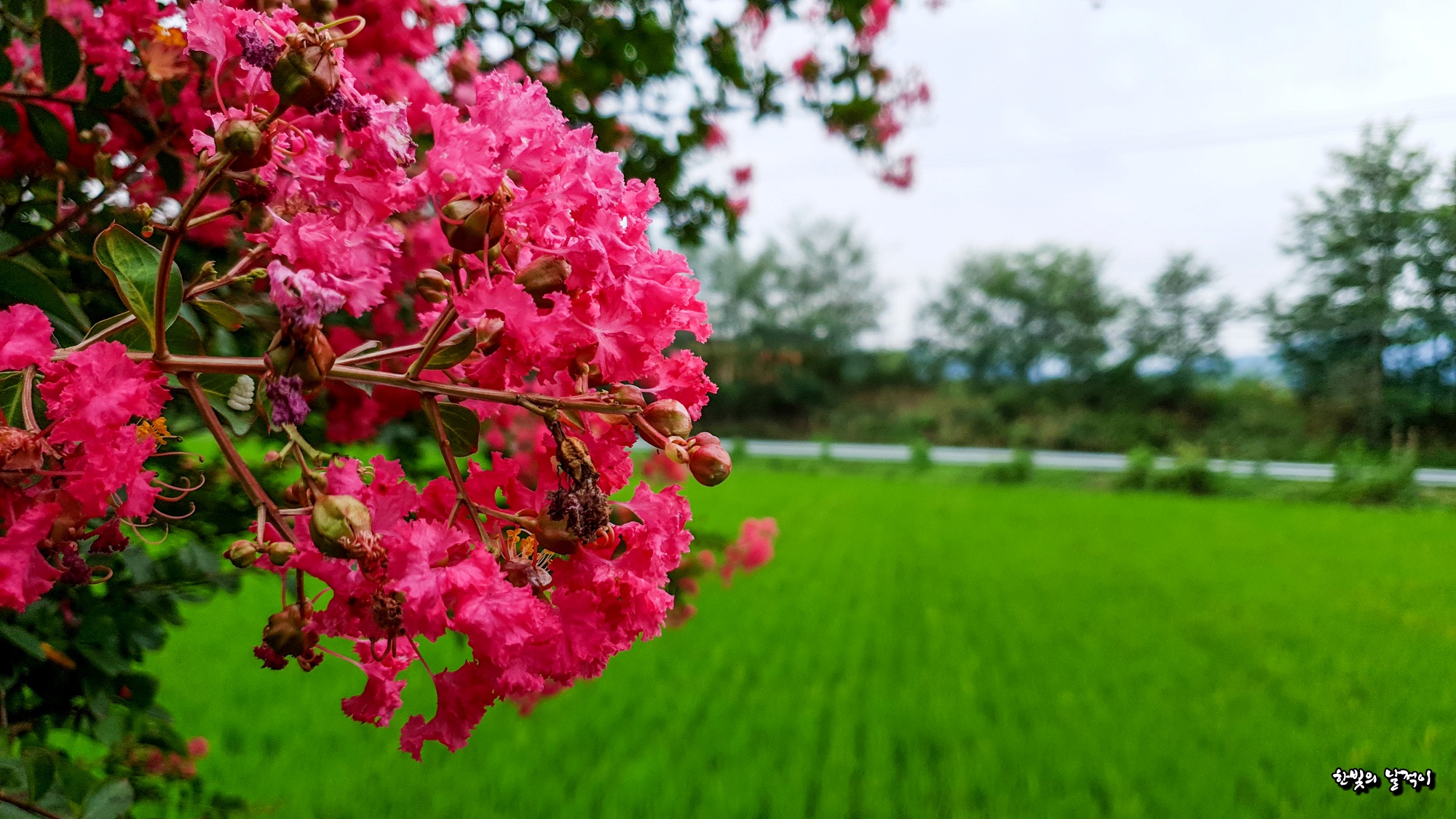 푸른 들판과 어우러진 배롱나무꽃!